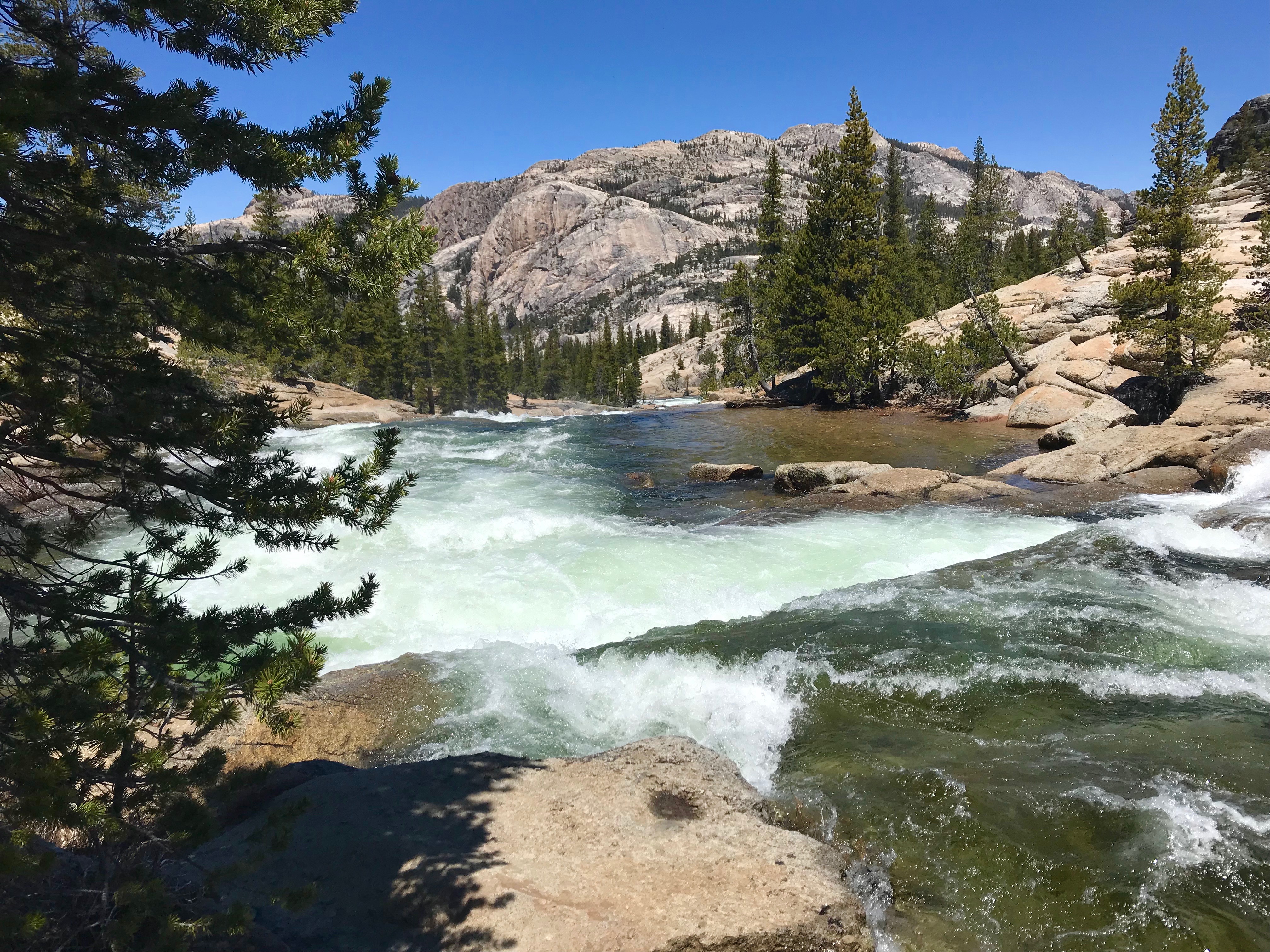 As you approach the main crossing of what I believe to be the Tuolumne River, the descent becomes more noticeable. With 1.7 miles left to Glen Aulin, the river flow becomes quite remarkable. Difficult to not stop and simply marvel in its power. In a short time, you will find Tuolumne Falls, the first of many along this trek. Pretty amazing, with plenty of room to safely go out on the rocks to fully appreciate the magnitude. From here, the trail descends more steeply taking you down stone paths and stairs, with some switchbacks, until ultimately landing you at Cascade Falls. At the base of this fall, you will cross a bridge that will take you right to Glen Aulin.